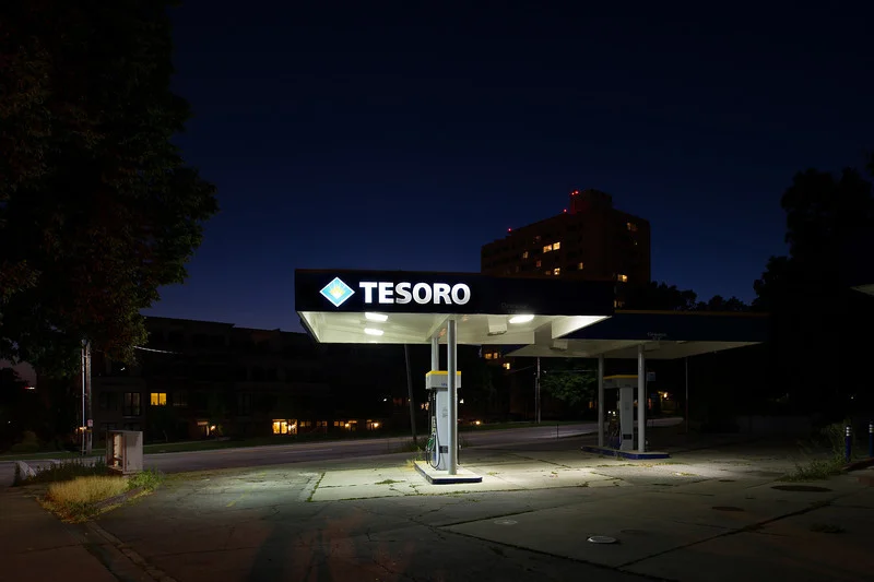 And I love this abandoned Tesoro station on the corner just down the block. And I've wanted to get this picture for a while.